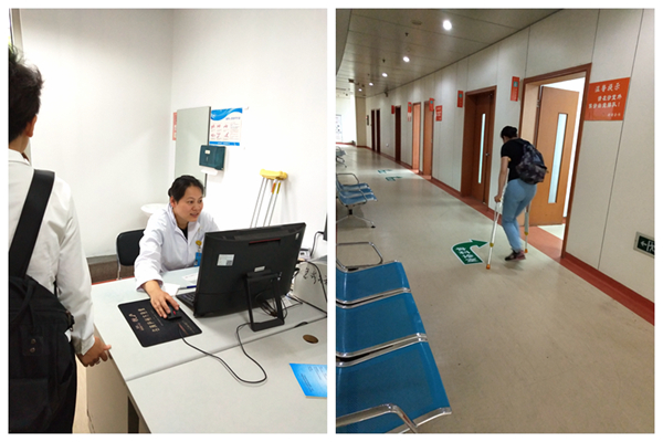 日早上,朱丽丹的左脚肿痛明显加重。“这天是急诊班,同事们都很忙,我不想临时换班给大家带来麻烦。”朱丽丹于是带着伤上班,同是医生的丈夫也很无奈,只能让她拄拐上班,保护脚踝。“在上班途中,被同事拍了照片。”