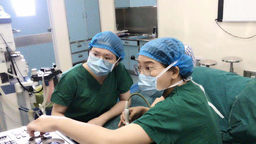 血管通路腔内治疗带回了宝贵经验。术中,王医生利用熟练的B超技巧和滨湖通路小组密切配合,迅速开通了堵塞的血管,患者内瘘血流恢复,震颤明显,术后即刻顺利上机行血液透析,手术效果立竿见影。