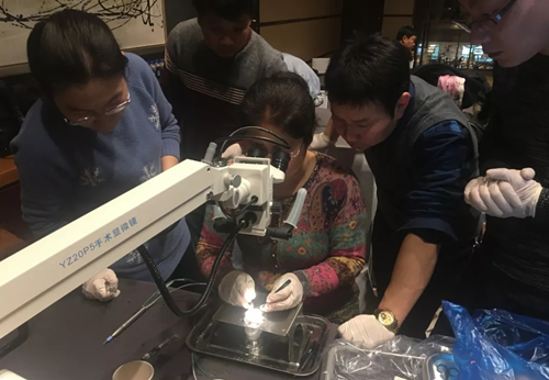 培训班运用“理论结合实践”的教学方式,在理论课结束后,为了让学员更好的完成实训操作,会议组织为实训操作提供了新鲜猪眼来供学员仿真模拟手术过程,配备全套超乳实训设备,开展动物眼实操练习,趁热打铁,在实操中巩固理论,夯实基础,加深对专业理论知识的理解,以理论提升实践,以实践验证理论,从而充分启发和调动了学员们的积极性和主动性,实现培训效果的最优化。