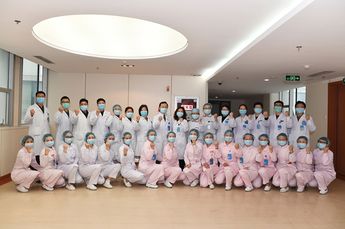 合肥市第一人民集团医院南区滨湖医院作为市级定点救治医院,在第一时间将急诊楼8楼全部腾出,及时改造为新冠救治病房,于1月24日收治第一例新冠确诊患者。100余人的医护团队逆行而上,奋战在防控一线。集团医院新冠救治专家组组长、呼吸与危重症医学科丁震主任带领专家组按照科学救治、精准施策原则,对每位确诊病例实行“一人一策”管理,实行中西医综合施治,对每例确诊病例组织中西医共同进行会诊,保障各确诊病例得到及时有效合理治疗,同时建立病例病情日报告制度,实时了解病情变化,牢牢掌握治疗工作主动权。护理部潘爱红主任带领护理团队用细致暖心的关怀、过硬的专业护理,医护全力配合守护生命。新冠病房全体医护团队