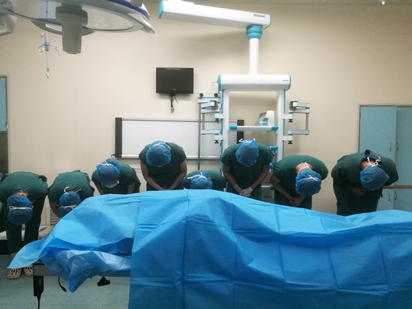 日,医生向捐献器官的胡晨鞠躬致敬。