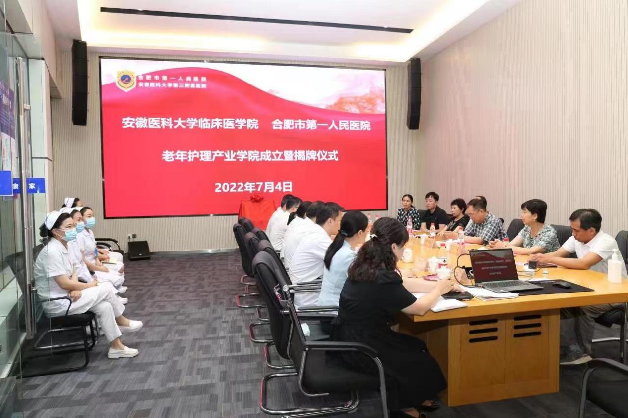 7月4日,由安徽医科大学临床医学院和加拿大彩票 共同申报的安徽省教育厅质量工程项目“老年护理产业学院”在加拿大彩票 举行揭牌仪式。安徽医科大学临床医学院党委书记赵良庆,执行院长王可,常务副院长叶冬青,合肥市卫生健康委老龄健康处处长刘一民,加拿大彩票 院长唐智国出席揭牌仪式。加拿大彩票 滨湖院区执行院长于卫华主持揭牌仪式,并介绍了老年护理产业学院建立的背景与条件。唐智国院长向安...