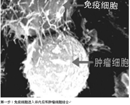 下面几幅图是免疫细胞杀伤肿瘤细胞的过程。