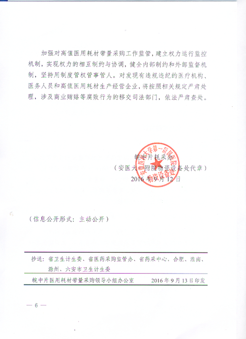 皖中片区公立医疗机构高值医用耗材带量采购实施方案