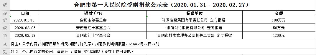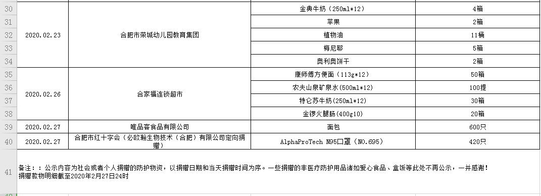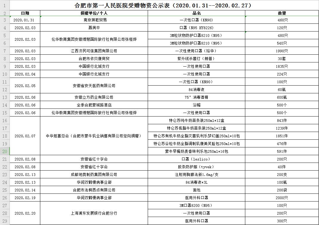 加拿大彩票 受赠物资公示表(2020.01.31--2020.02.27)