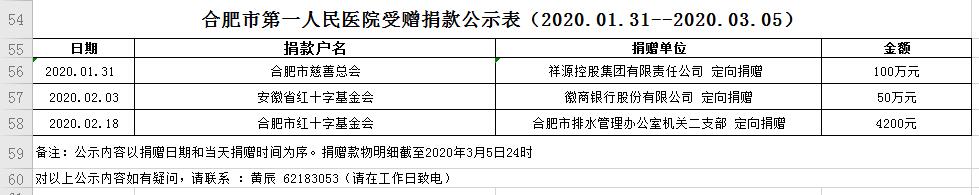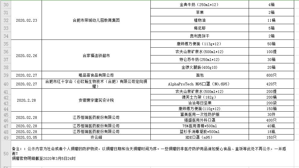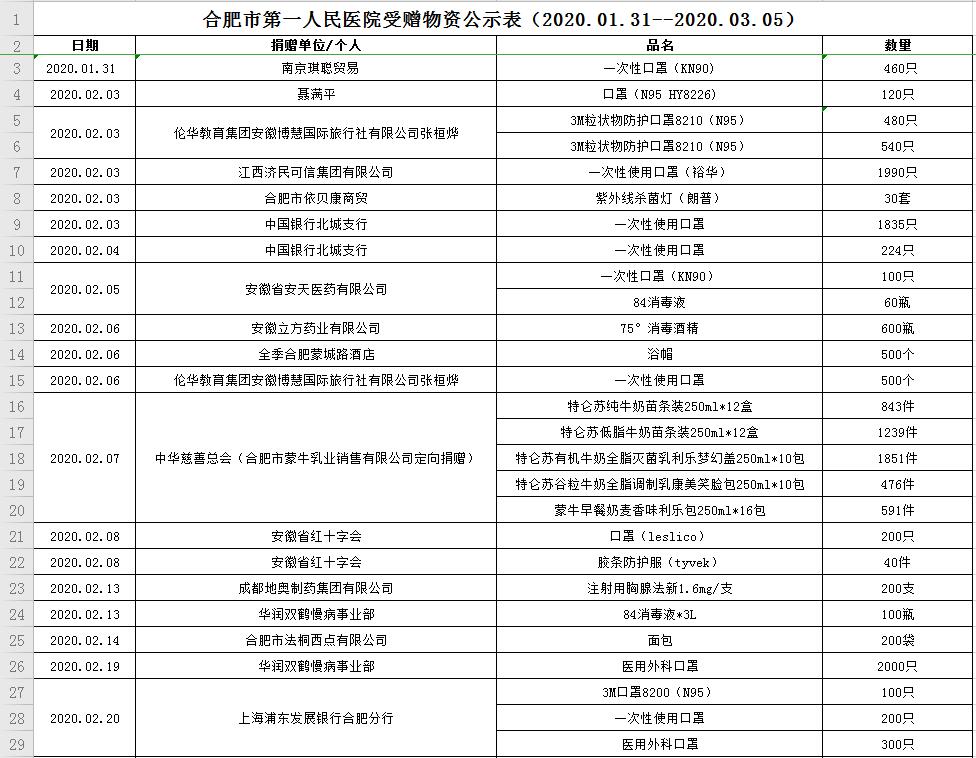 加拿大彩票 受赠物资公示表(2020.01.31--2020.03.05)
