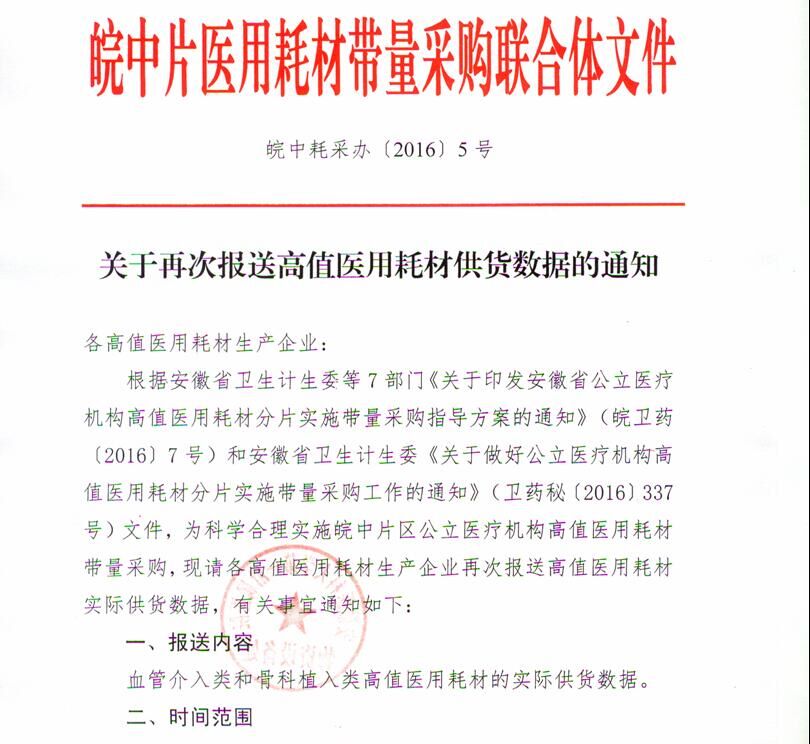 皖中片医用耗材带量采购联合体文件