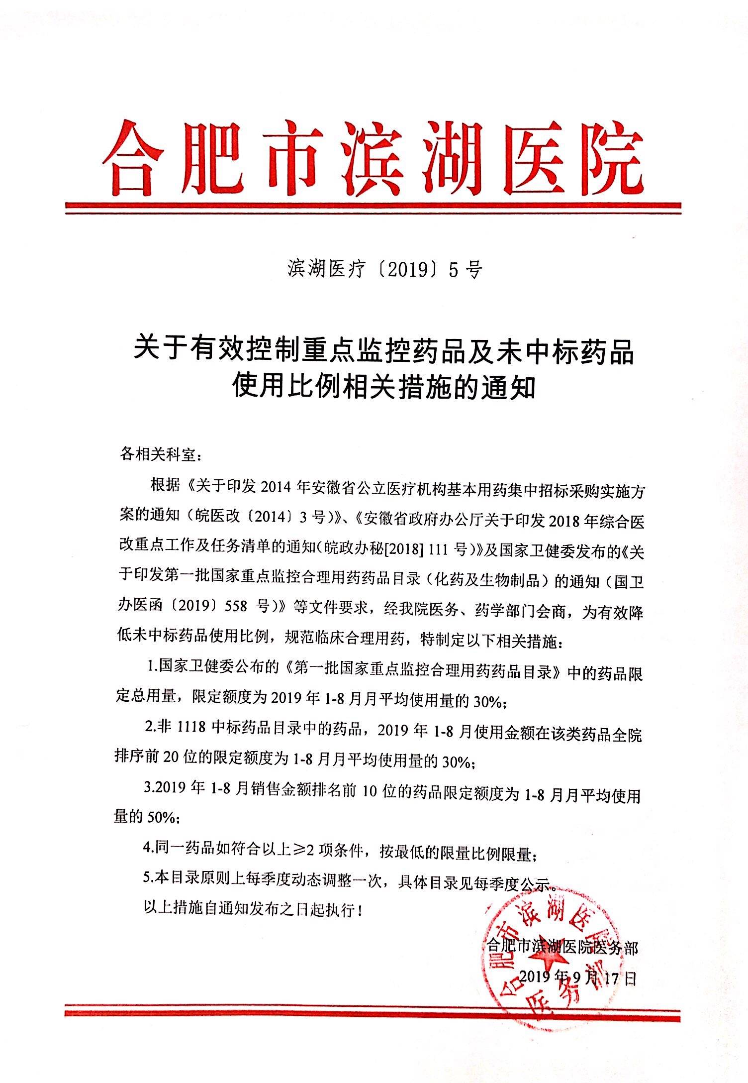 关于有效控制重点监控药品及未中标药品使用比例相关措施的通知