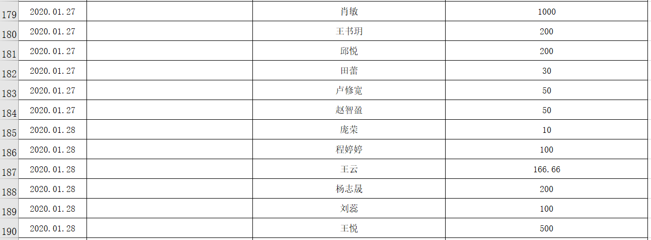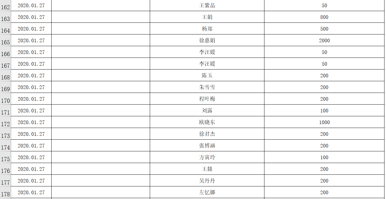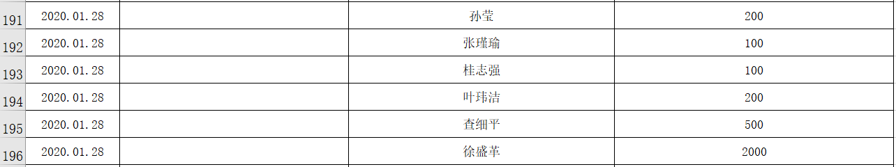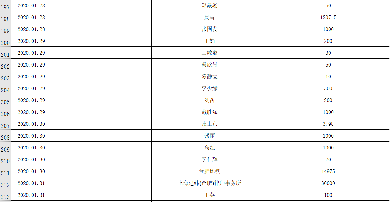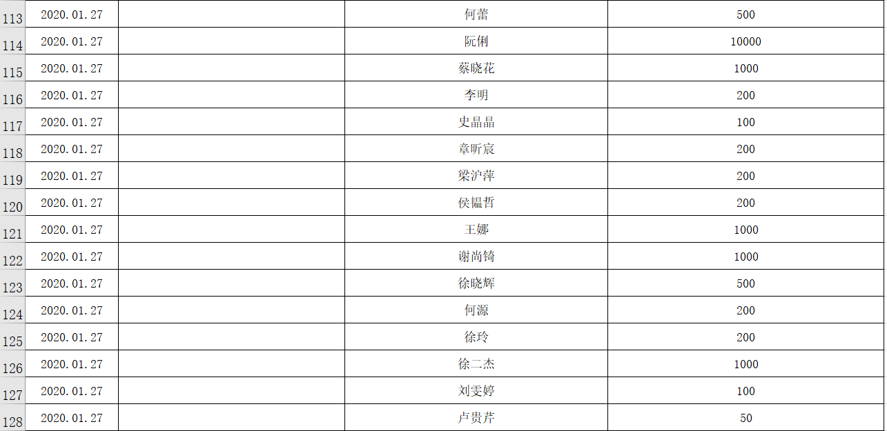 滨湖医院受赠物资和捐款公示表(2020.01.24--2020.02.06)