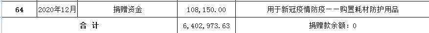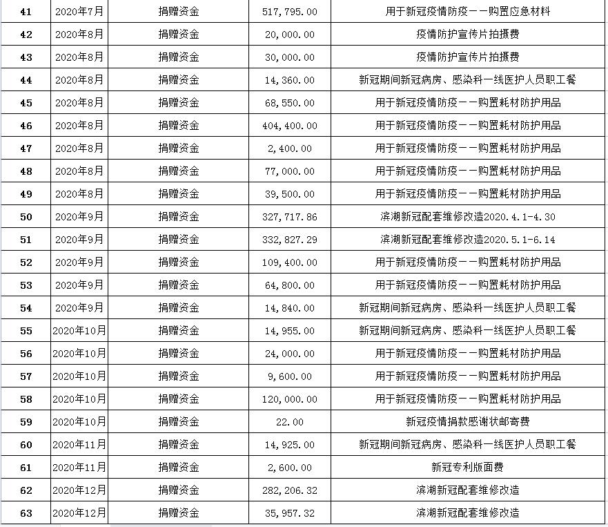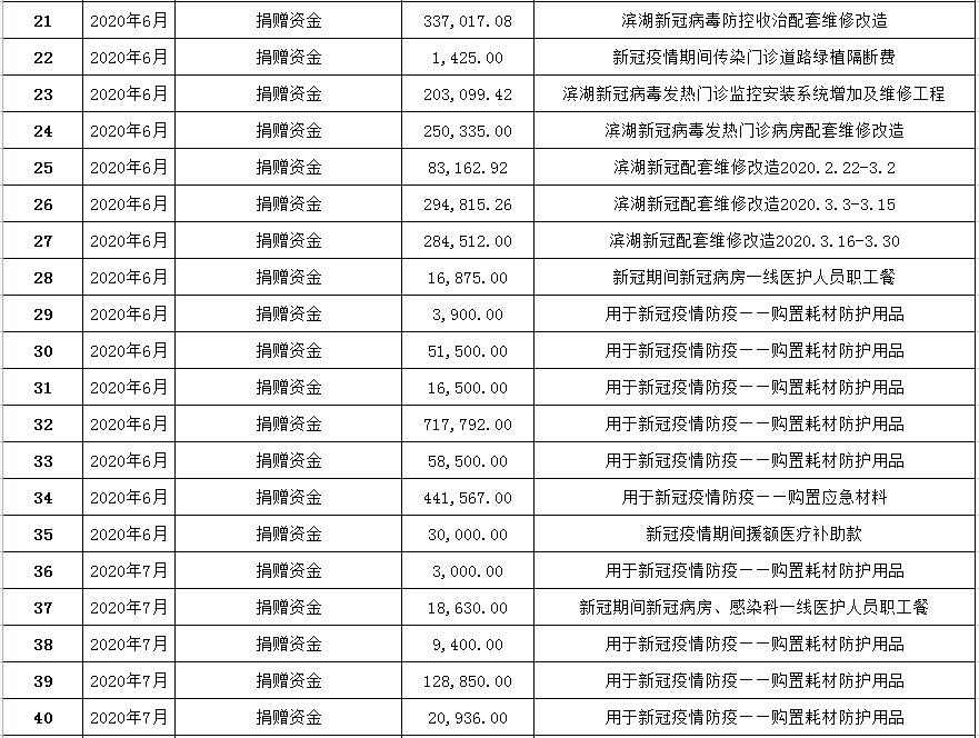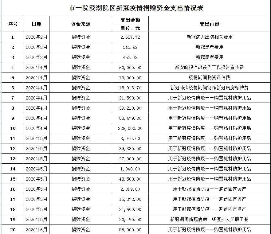加拿大彩票 滨湖院区新冠疫情捐赠资金支出情况表