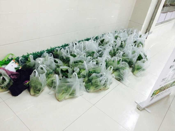 桃溪农场工作人员将新鲜无污染的蔬菜送