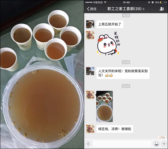由于持续酷暑高温,为切身维护广大职工高温期间的身体健康,院工会为全院在职职工防暑降温,夏送清凉。7月21日起,本部、滨湖、西区都为在职职工准备了免费的绿豆汤及酸梅汤防暑降温。深受广大职工好评。