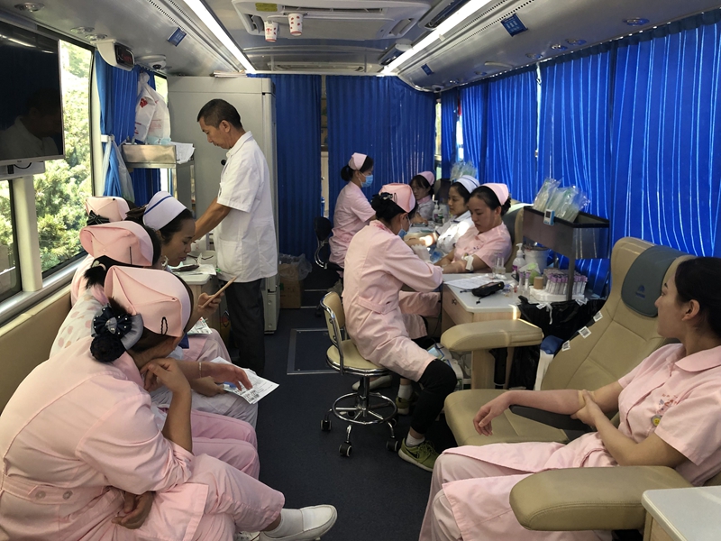 活动开始前一周,院工会通过医院内网、通知栏、微信工作群等多个宣传平台对无偿献血的意义以及注意事项等内容,在全院上下进行广泛宣传、积极倡导、深入发动,得到了广大职工的踊跃响应。献血的两日里,来自医院各临床、医技科室医务人员及后勤工作人员陆续来到献血现场填表、采血化验,在工会的精心组织下,积极有序地参加无偿献血。职工献血队伍中,既有工作多年的老职工,也有刚刚参加工作的年轻人,许多职工都是爱心队伍中的“献血常客”,大家纷纷表示:身为医护人员,不仅可以用精湛医术和优质服务守护生命 健康,更用自己的鲜血为生命加油,共筑幸福平安,以血液奉献爱心,以爱心呵护生命。