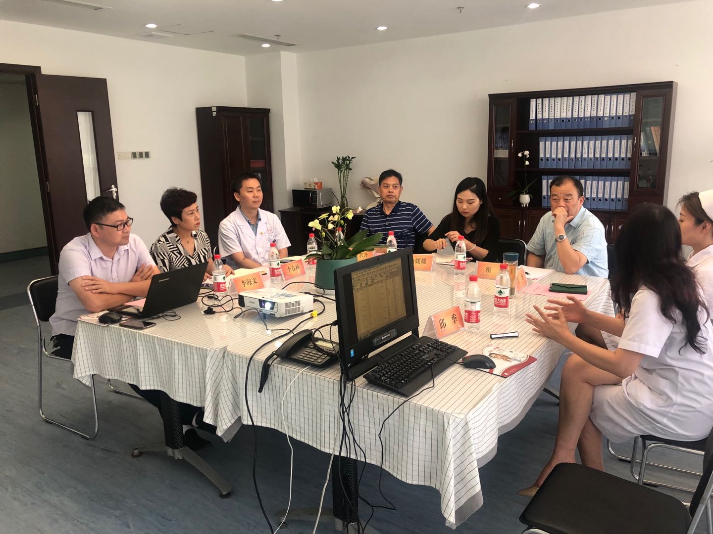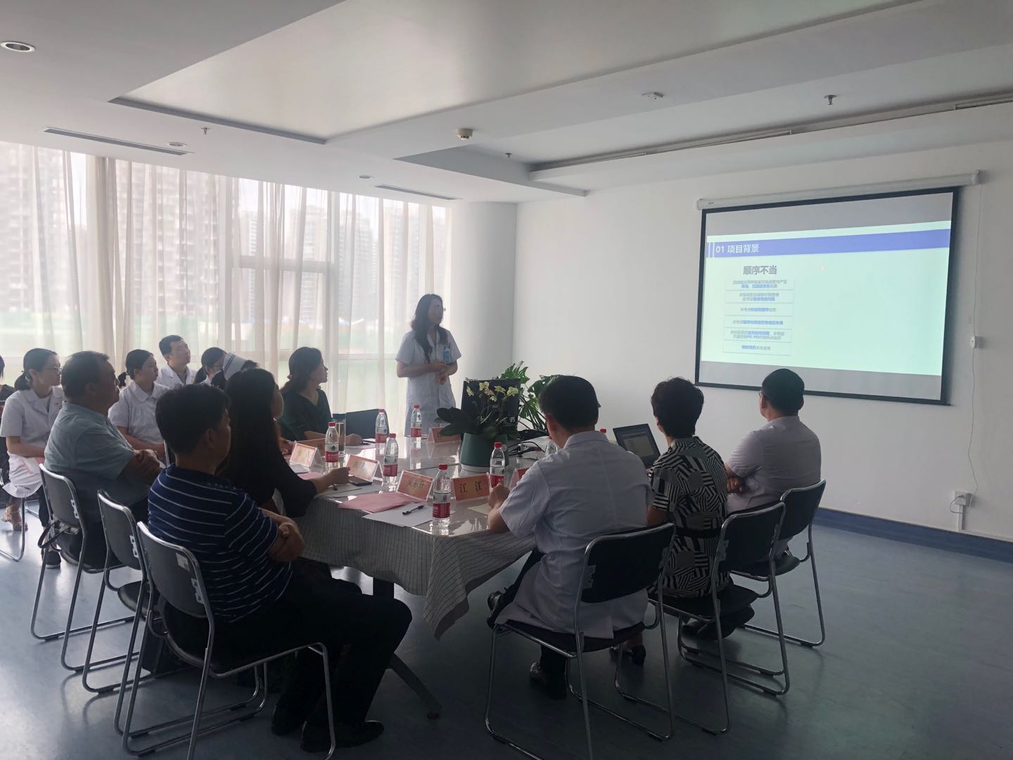 2020年8月25日下午,合肥市总工会创新成果项目专家组莅临滨湖医院考察药学部创新成果申报项目。科研处处长李海文主持会议,工会主席李春林、医务护理相关负责人及项目组成员在医技楼八楼会议室接待市总工会专家组一行。