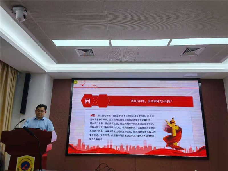 本次普法宣传培训邀请到合肥市总工会法律援助团冷贺矿律师,内容围绕《民法典》的意义、发展编纂历程、作用概括介绍,重点对《民间借贷》《婚姻法》及《劳动法》进行详细剖析。结合现实生活中真实法律案例,采取以案说法的形式加深广大职工对维权法律知识的理解。讲座现场,气氛轻松活跃,互动热烈,让在座职工知晓基本法律常识和法律途径,对全面提升法治意识和防范能力起到了很好的促进作用。