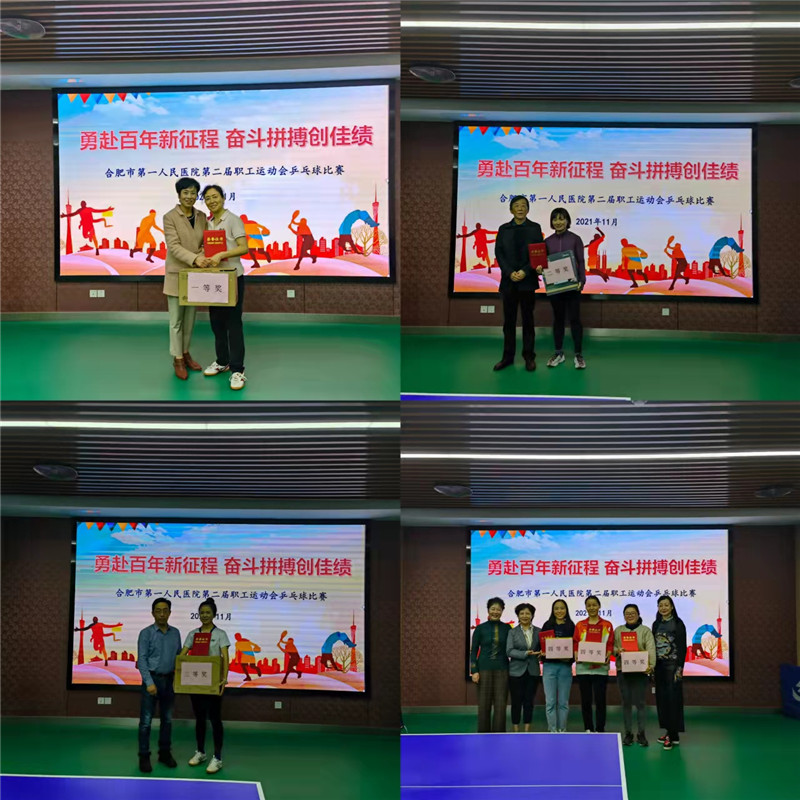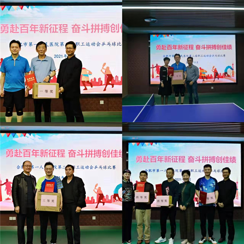 比赛规则按国家级比赛规则执行,第一阶段比赛,采取三局两胜制,半决赛、决赛采取五局三胜制,共有近50名职工报名参加。党委书记吴冬雷参赛并为选手们加油鼓劲!在赛场上同志们每分必争、服从裁判、尽情挥洒着汗水。经过激烈角逐,男单方面,医技分会温耀勤获得男子组单打一等奖;吴书记获男子单打二等奖;三等奖被外一分会陈红兵夺得;医技分会李钊琨、外二分会张家宏、大内分会杨彬获男子组单打四等奖。女子方面,医技分会余小琴获得女子组一等奖;高寅巳获女子组单打二等奖;外一分会彭晓娟获女子组三等奖;大内分会张玲妹、外一分会罗庆华、外二分会程玉芳荣获女子组单打四等奖。