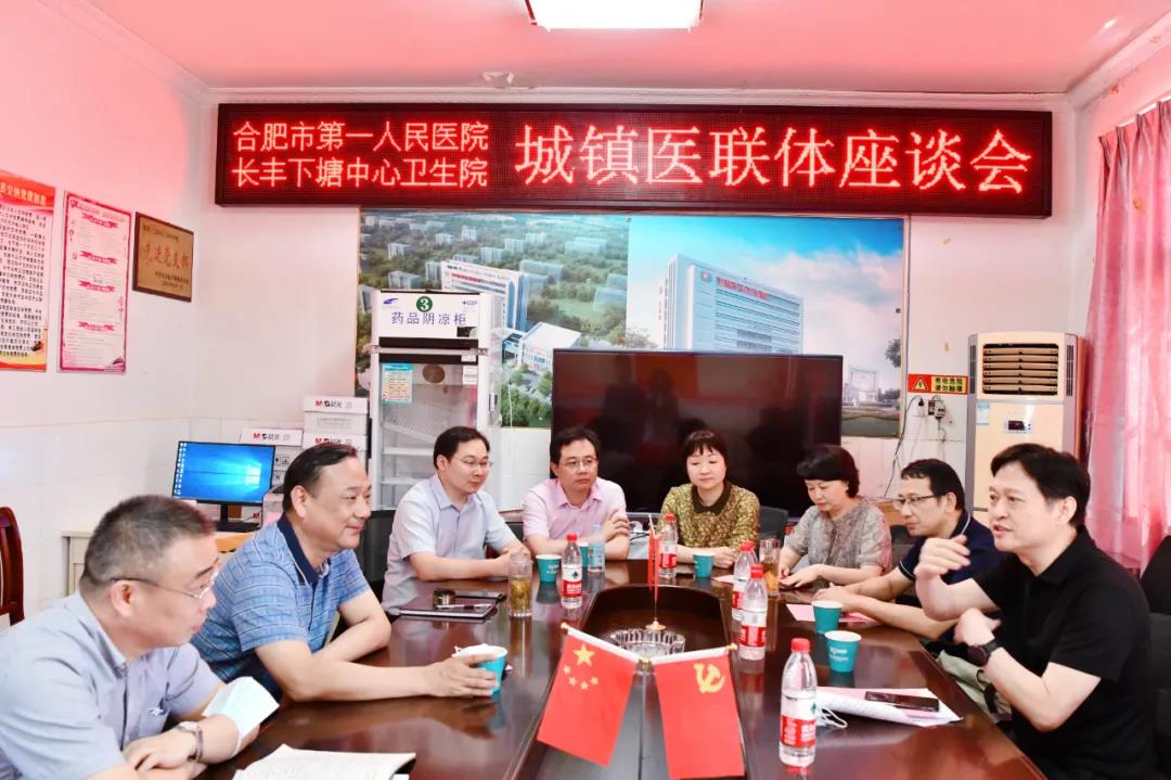 9月10日上午,加拿大彩票 党委书记吴冬雷带队赴长丰县下塘镇中心卫生院,就双方创新建设紧密型城镇医联体工作进行座谈。长丰县卫健委党委书记、主任黄克安,下塘镇中心卫生院院长孔宇,加拿大彩票 副院长宁仁德,医务部副部长胡景春,合肥名医工作室领衔人童钟、张晓红、杨静、贺克武、席春华及相关人员参加座谈。