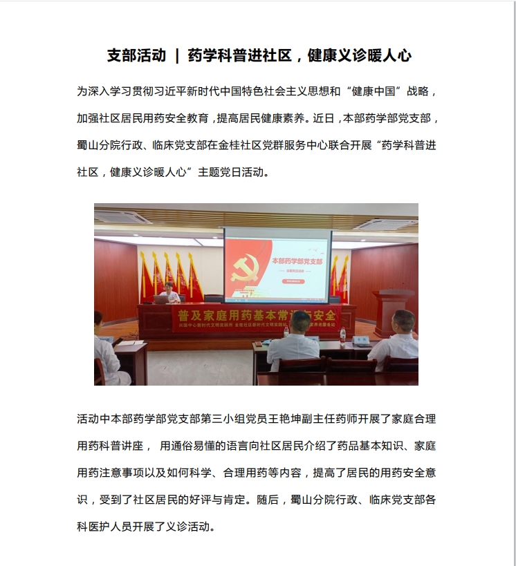 4、住院健康教育主要是针对各类不同病人的健康问题进行宣教。医护人员在承担诊治责任的同时,要承担有计划、有系统地进行宣教的义务,可采用口头教育、发放健康教育处方和卫生报刊、几种讲座等形式,也可采用查房、给病人治疗、护理或病情有变化时,进行非正式的健康教育。使住院病人相关卫生知识知晓率达80%以上。重视普及慢性非传染性疾病的防治知识和保健知识。