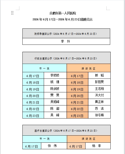 2024年6月17日—2024年6月23日值班公示