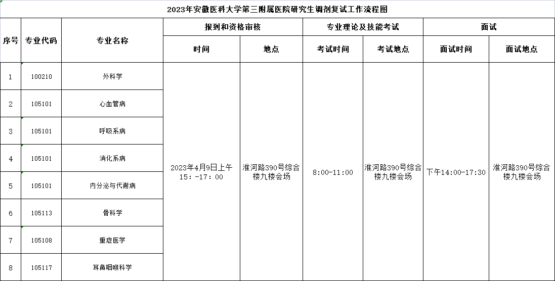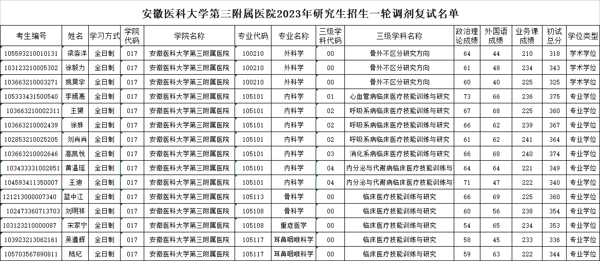 安徽医科大学第三附属医院2023年硕士研究生一轮调剂复试相关事宜的通知