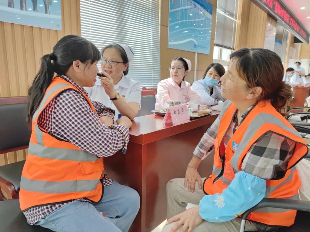 医务人员为工人开展了中暑的预防与应急处置方法、心肺复苏技能培训、外伤应急处置方法培训。同时,医务人员示范讲解止血、创伤包扎等工地上常见的急救操作技能,与地铁建设者们一起开展伤口应急处理演练、心肺复苏技能实操演练,增强员工与工人保护自己、保护他人的实际能力。同时,来自心内科、关节外科、脊柱骨科、产科、影像中心、中医护理等多个学科的医生和护士为地铁工人开展量血压、贴耳穴等义诊活动。