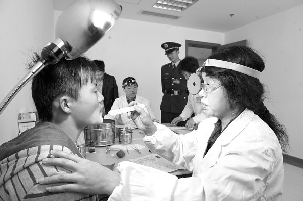 ,应征入伍青年在合肥市滨湖医院接受体检。整个体检工作将持续到本月
