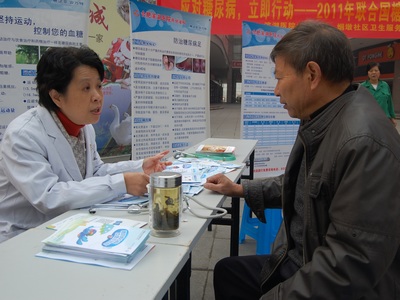 今年联合国糖尿病日的活动主题是“糖尿病教育与预防”,口号为“应对糖尿病,立即行动”。当天上午,合肥市滨湖医院联合烟墩社区卫生服务中心、世纪金源社居委在滨湖新区世纪金源购物中心举办了大型义诊活动,医护人员为社区居民免费进行糖尿病筛查、提供诊疗咨询、发放宣传资料。