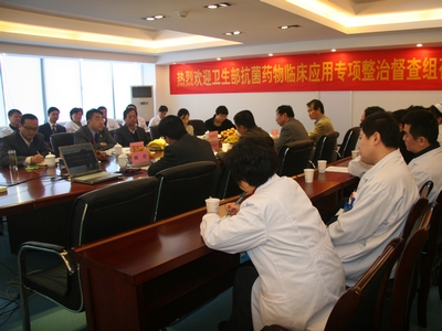 对抗菌药物临床应用工作进行检查指导,安徽省卫生厅医政处费勤福处长、合肥市卫生局胡国春副局长陪同检查。