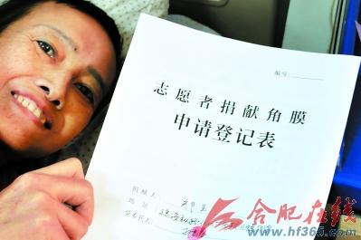 当天上午,安徽省红十字会眼角膜库的工作人员还为郑玉送来了《志愿者捐献角膜申请登记表》,