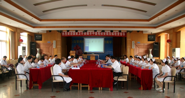 检查指导表示感谢,并介绍了参会的相关人员。文刚副院长首先介绍了医院基本情况,并就脑卒中筛查与防治的具体创建工作向检查组进行了汇报,他指出,申报卫生部脑卒中筛查与防治候选基地医院,全院上下高度重视,院领导亲自挂帅,举院而为,全力支持并扎实做好各方面工作。