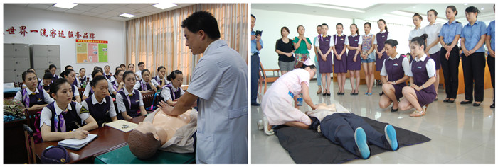 急诊科的志愿者为乘务人员、地勤人员进行了