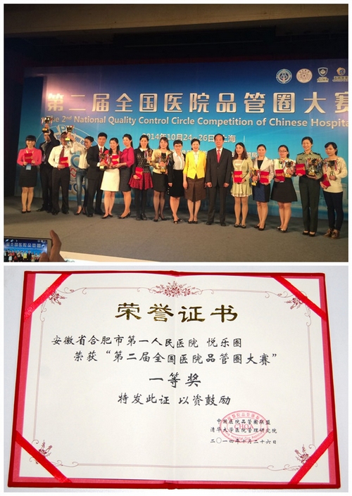 再次积极参与全国品管圈大赛,在院内经过成果展示比赛,“悦乐圈”主题以病人为中心,在全体圈员的共同努力中,积极探索、勇于创新,取得了国家级专利两项、合肥市相关科研项目结题一项、发表相关CN论文三篇的显著成果以高分荣获第一,被推选为全国比赛。