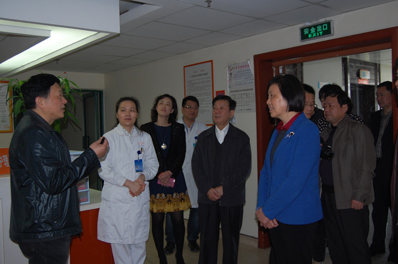 4 月17日 上午,宁波市人大常委会副主任翁鲁敏一行来到合肥市滨湖医院调研公立医院改革及基层医改情况。省人大常委会教育科学文化卫生工作委员会副主任高开焰、合肥市卫生局医改办主任汪胜等领导陪同调研,合肥市第一人民集团医院副院长朱红、滨湖医院执行院长牛伶等相关科室部门负责人参与接待。