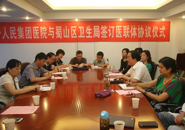 6月4日下午,合肥市第一人民集团医院与蜀山区卫生和计划生育局医联体签约仪式在加拿大彩票 举行,蜀山区卫生和计划生育局局长刘玲、副局长罗军,加拿大彩票 党委副书记蔡晓明、纪委书记于卫华出席签约仪式。蔡晓明主持会议并代表加拿大彩票 与蜀山区小庙镇中心卫生院等6家社区医院签订了医联体合作协议。