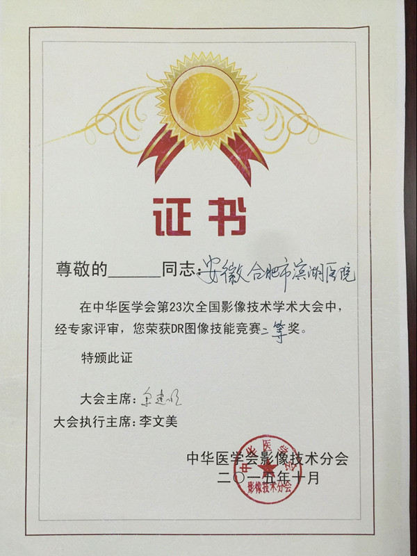 图像技能竞赛由中华医学会影像技术分会主办,来自全国三十多个省市的众多医院参加了竞赛。大赛共设一等奖1个,二等奖2个,三等奖3个,滨湖医院CT室荣获全国