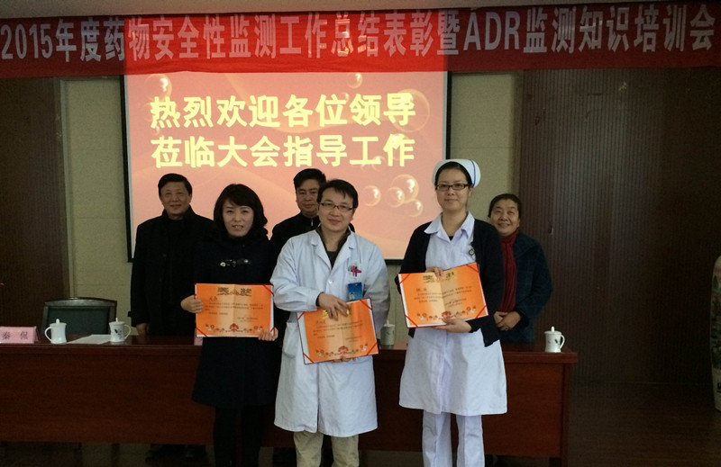 2015年药物安全性监测工作总结表彰暨药品不良反应(ADR)监测知识培训会议在集团医院总部行政大楼八楼会议室召开,集团医院朱红副院长、医务部胡景春副部长参加了总结表彰会,院药物安全性监测管理办公室秦侃主任主持会议。