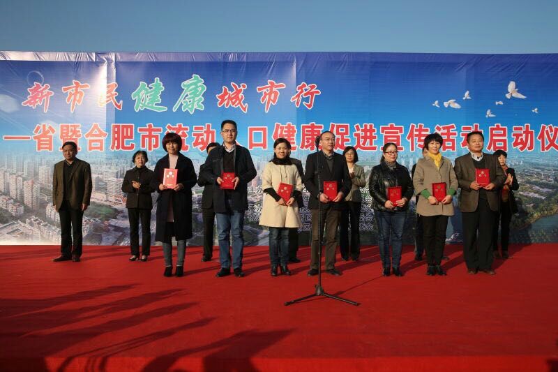 ,安徽省暨合肥市“新市民健康城市行”启动仪式在合肥新站高新技术产业开发区新海公园中心广场隆重举行。本次启动仪式由安徽省卫计委流动人口处王俊宝处长主持,合肥市卫计委主任秦继平致辞,省卫计委杨武巡视员讲话。会上正式成立了合肥市流动人口健康素养巡讲专家组,由省市卫生部门领导向专家组的