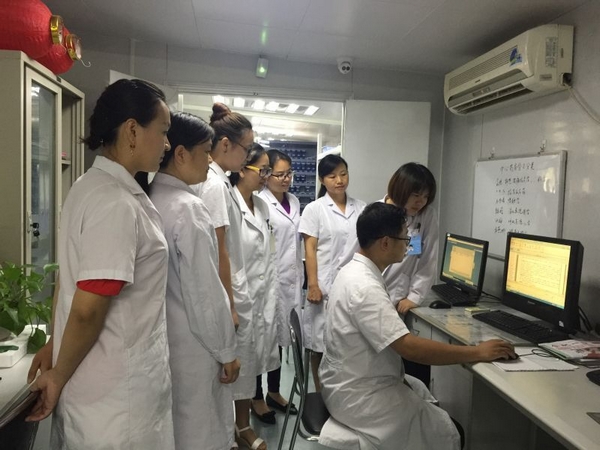 药学部中心药房作为全院住院病人药品供应的主要部门,正积极探索从单纯的医嘱药品调剂向主动的医嘱药品调剂前审核再调剂的工作模式转型。为了保障此项工作的顺利开展,中心药房全体药师在完成日常工作之余,利用每天下午的工作时间间隙,在有限的工作空间中进行医嘱审核相关内容的系统学习,内容涵盖药品说明书、临床用药相关教材、典型医嘱案例讨论等,学习过程中气氛热烈,大家各抒己见,充分调动了各位药师的学习热情,以及对药学服务模式的转型充满了期待。