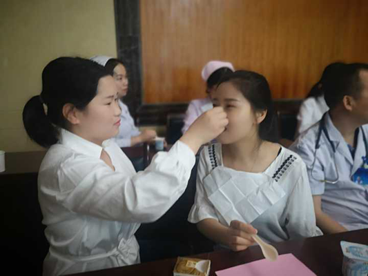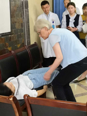 随后Rubach教授来到了会议室举行了座谈会,就我们在日常护理工作中存在的难以解决的问题一一进行了解答。Rubach教授讲授的方式十分的生动有趣,专业知识与自身经历相结合,还增加了现场模拟教学,大家两两组队,作为护理人员的同时也扮演老人的角色,通过亲身感受来对护理效果进行评价。对于不明白的地方Rubach教授更是不断讲解亲身示范,同时肯定了科室的一些护理模式。大家积极发言,现场气氛活跃,掌声不断。