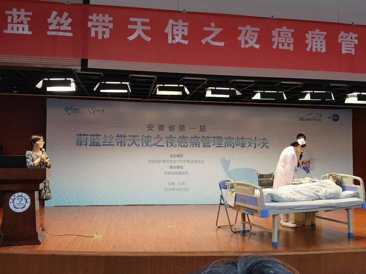 为规范癌痛管理,提升护士的癌痛筛查、评估、健教与随访技能,推广优秀癌痛管理经验,发挥护士在疼痛管理中的价值,5月25日,由安徽省护理学会安宁疗护专委会主办的安徽省首届“蔚蓝丝带天使之夜癌痛管理高峰对决赛”在合肥举行,来自全省各级医院共30支代表队参赛,每支代表队由导师、护士、患者3人组成,采取抽签法随机抽取组委会预先设置案例进行即兴表演。